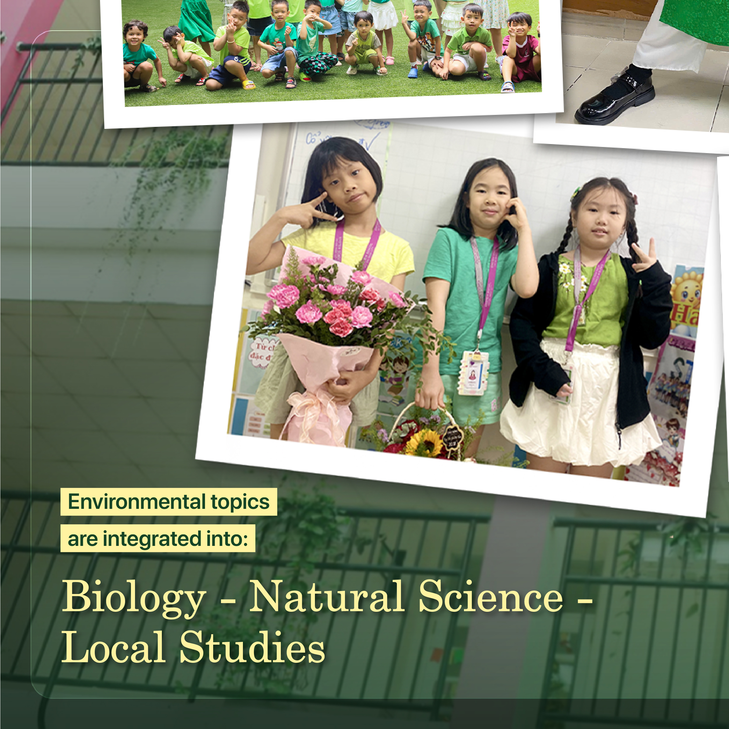 In class, environmental topics are integrated into subjects like Biology, Natural Science, and Local Studies, helping students better understand the world around them. Learning then extends into hands-on, recurring activities: