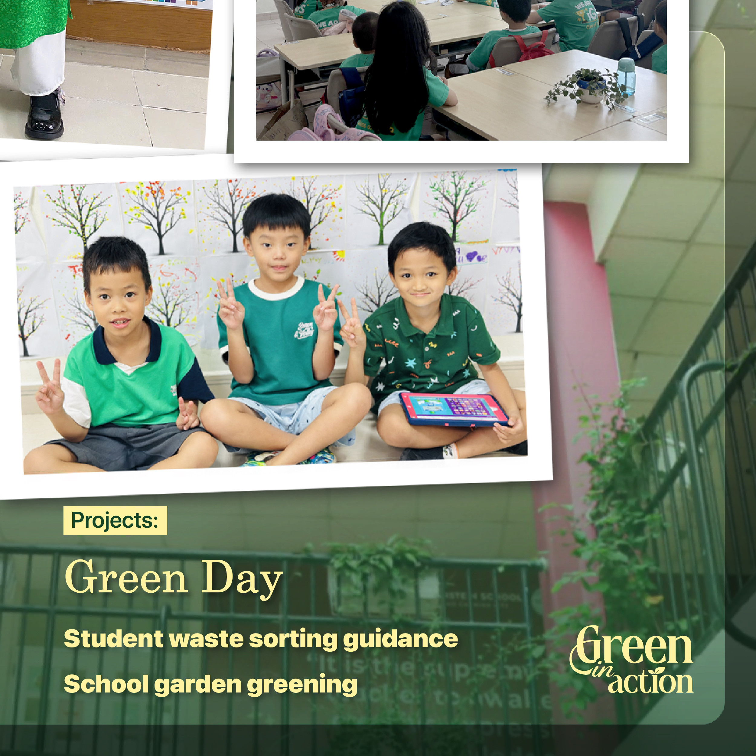 🟢 Green Day: A schoolwide green dress day on the last Friday of each month, creating a shared rhythm around sustainable living.
